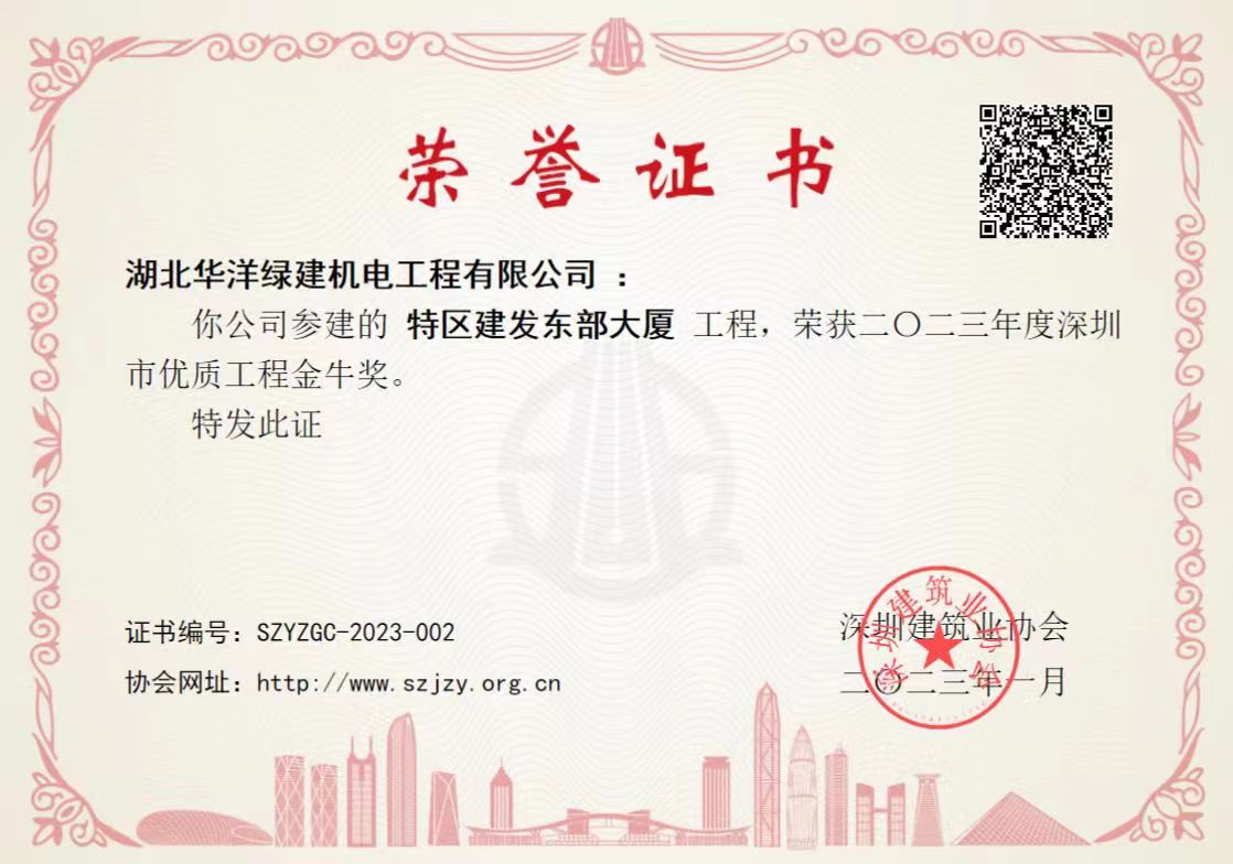 2023/01/18 深圳特區(qū)建發(fā)東部大廈項(xiàng)目榮獲“深圳市優(yōu)質(zhì)工程金牛獎(jiǎng)”